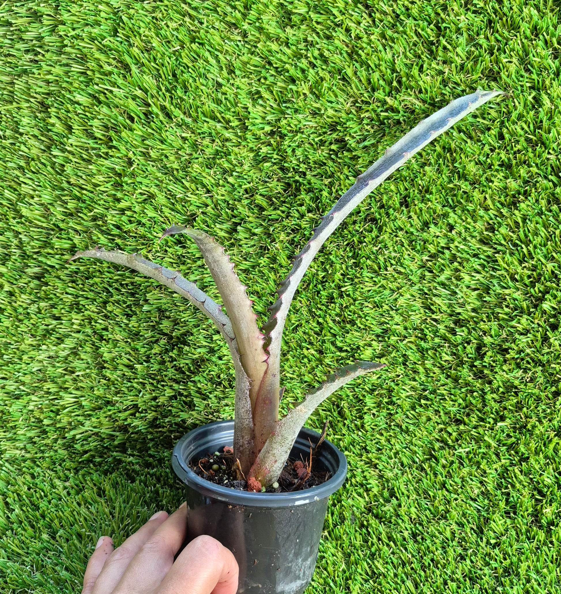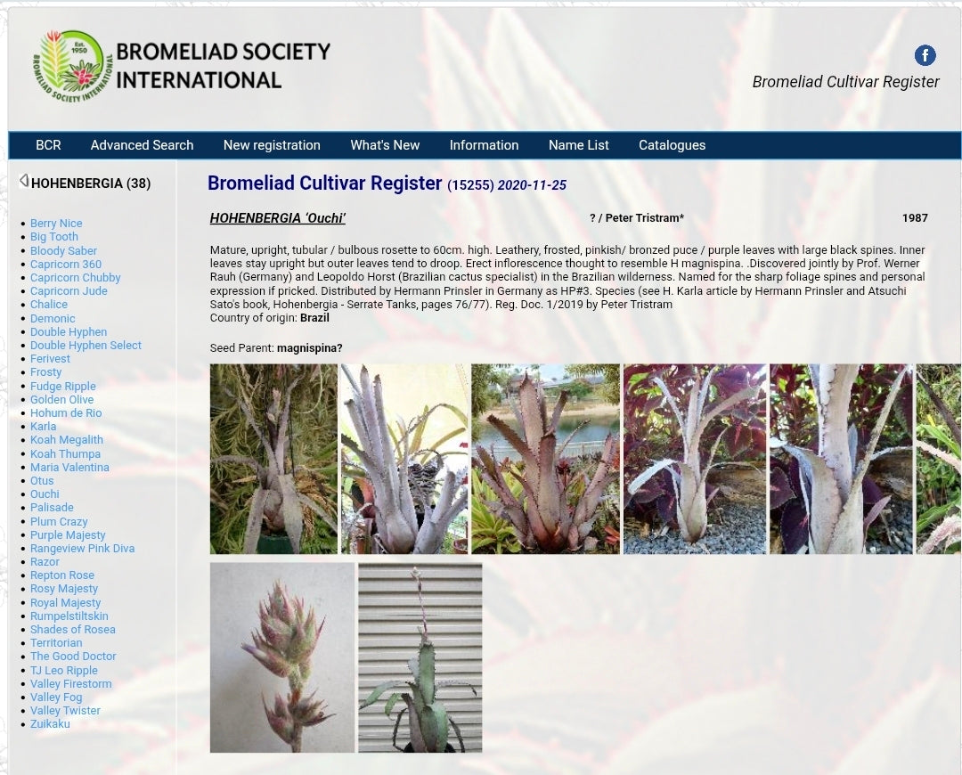 Roseta madura, erguida, tubular/bulbulosa a 60 cm. de altura. 📏 Puce de color lana, escarchado, rosado/bronceado/hojas moradas con grandes espinas negras. 💜 Las hojas internas permanecen erguidas, pero las hojas externas tienden a caer. 🍂 La inflorescencia recta se cree que se asemeja a H. magnispina. 🌿 Descubierto conjuntamente por el profesor Werner Rauh (Alemania) y Leopoldo Horst (especialista brasileño en cactus) en el desierto brasileño. 🇧🇷 Llamado así por las afiladas espinas de follaje y la expresión personal si se pincha. 🌵 Distribuido por Hermann Prinsler en Alemania como HP#3. 🇩🇪 Especies (véase el artículo de H. Karla del libro de Hermann Prinsler y Atsuchi Sato, Hohenbergia - Serrate Tanks, páginas 76/77). 📚 Reg. Doc. 1/2019 por Peter Tristram 📝